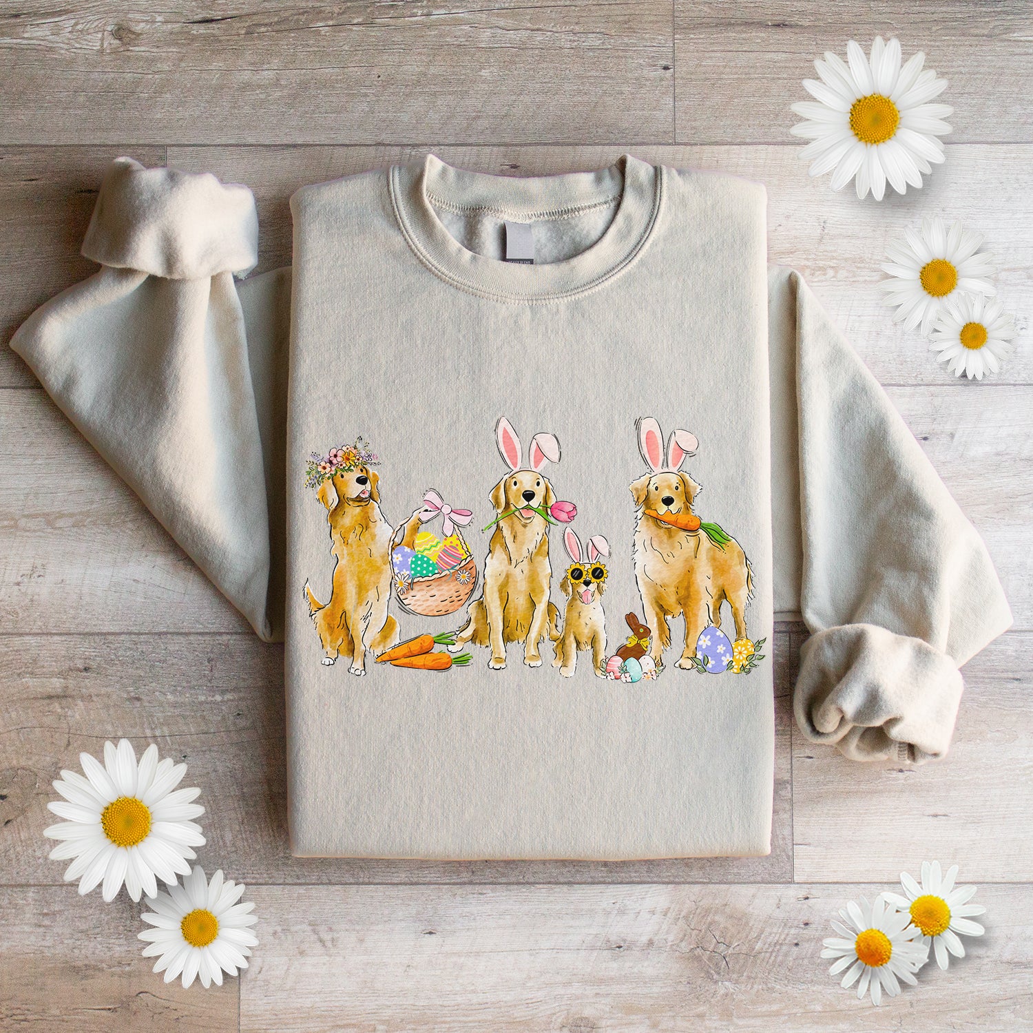 Hop into spring with SEF's Easter Crewneck! Featuring golden retrievers hilariously dressed as Easter bunnies, each design is hand-drawn by Samantha herself, adding a personal touch to your holiday wardrobe. Not only is it adorable, but it's also as soft as a bunny's fur, ensuring maximum comfort while you spread Easter cheer! 🌸🐶🐰