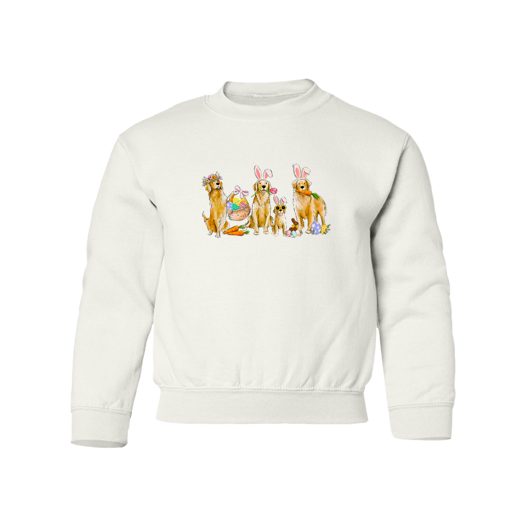 Hop into spring with SEF's Easter Youth Sweatshirts Featuring golden retrievers hilariously dressed as Easter bunnies, each design is hand-drawn by Samantha herself, adding a personal touch to your holiday wardrobe. Not only is it adorable, but it's also as soft as a bunny's fur, ensuring maximum comfort while you spread Easter cheer! ๐ธ๐ถ๐ฐ