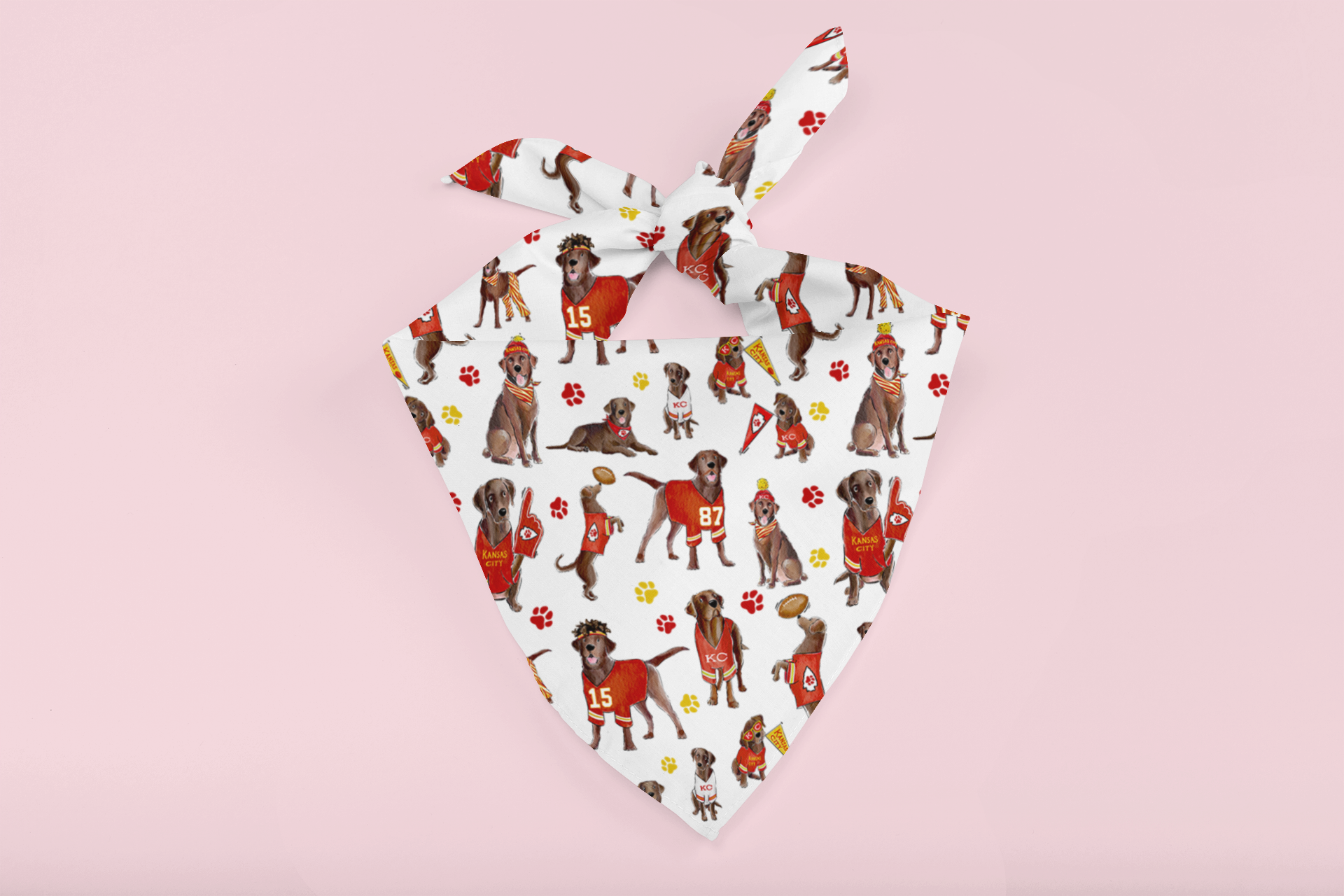 So whether you're cheering on the Chiefs with your furry friend by your side or just want to add some pizzazz to your outfit, this bandana is sure to turn heads and get some smiles. Get ready to show off your love for both Labs and football in the cutest and funniest way possible!