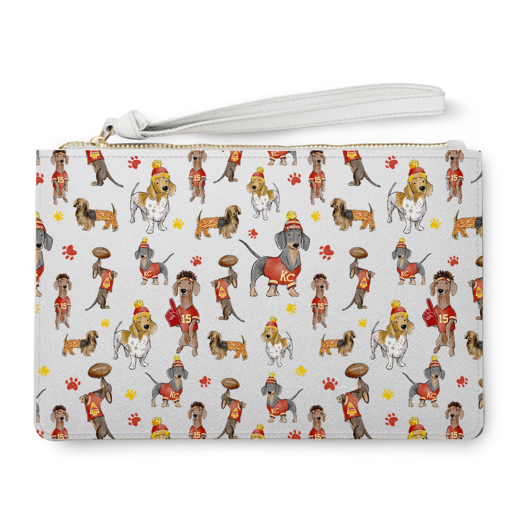 You're going to LOVE this super cute zippered clutch! What's the best part?... It's the perfect size to fit all of your game day stadium essentials! GORGEOUS quality! It features a zip fastening, internal pocket, and wrist loop for easier handling. Crafted with 100% vegan leather in a beautiful Saffiano finish.