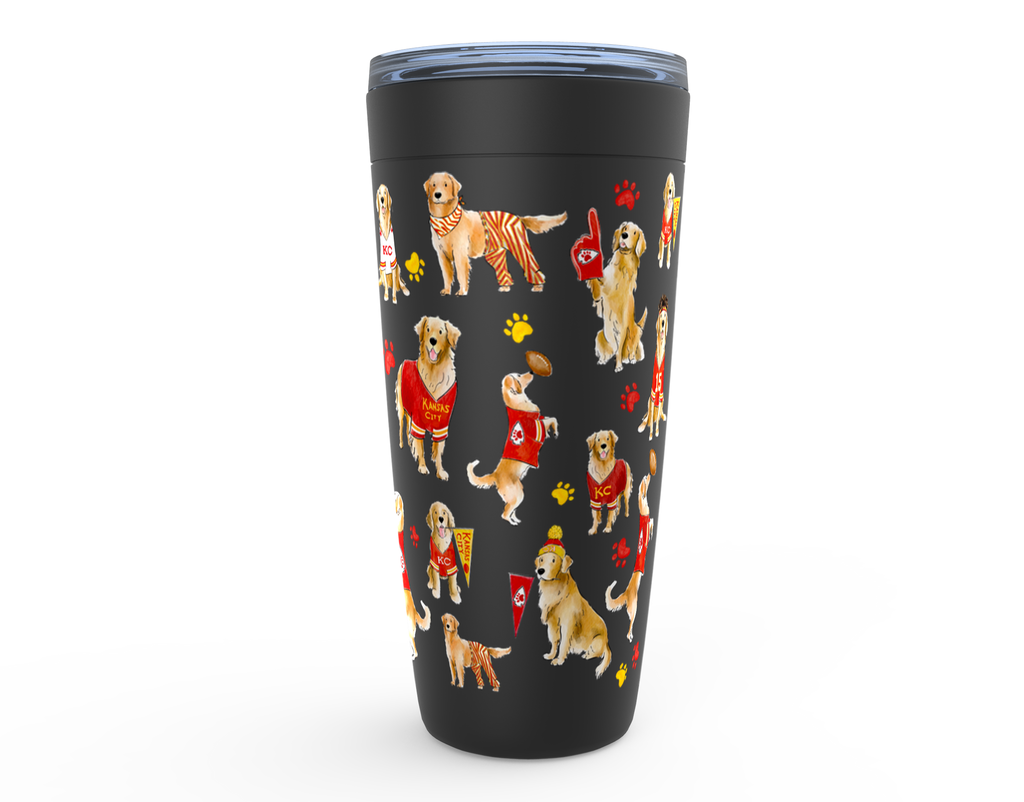 This tumbler is pawfect for tailgating, watching the game from home, or just showing off your love for KC Football and golden retrievers. It's like having your own personal cheerleader that also keeps your drink at the pawfect temperature.