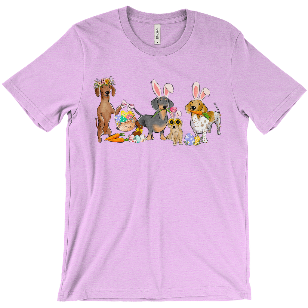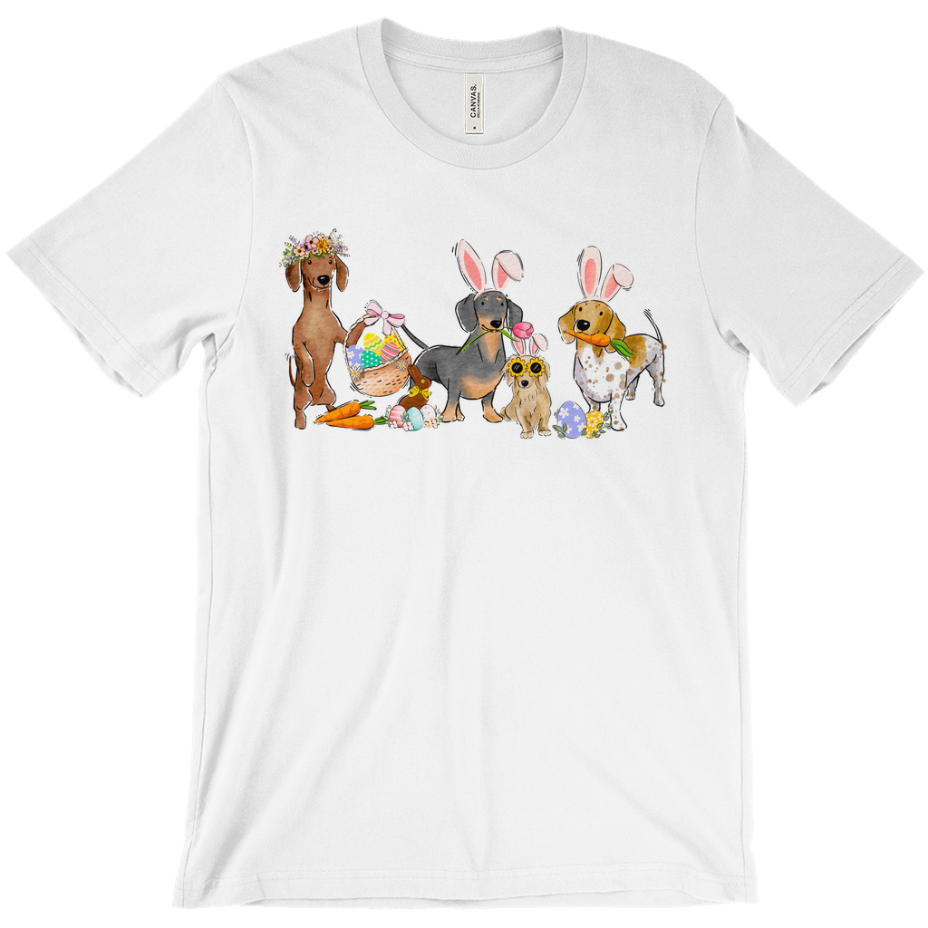 Hop into spring with SEF's Easter T-shirt! Featuring Wieners hilariously dressed as Easter bunnies, each design is hand-drawn by Samantha herself, adding a personal touch to your holiday wardrobe. Not only is it adorable, but it's also as soft as a bunny, ensuring maximum comfort while you spread Easter cheer! 🌸🐶🐰
