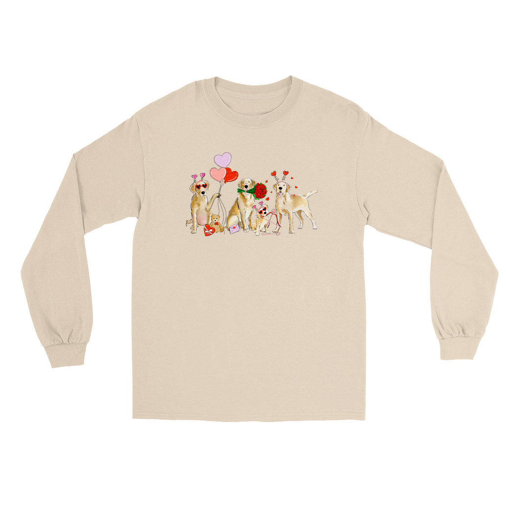 Unleash the cuteness with our exclusive Valentine's Day long sleeve tee, featuring Labradors drawn by Samantha. Crafted with a pre-shrunk jersey knit and a double-needle bottom hem, this long sleeve is a comfortable, everyday classic shirt that is perfect for relaxing on the couch or even working out. The perfect gift for dog lovers, it's a furry fashion statement that guarantees smiles and snuggles. 🐾💖