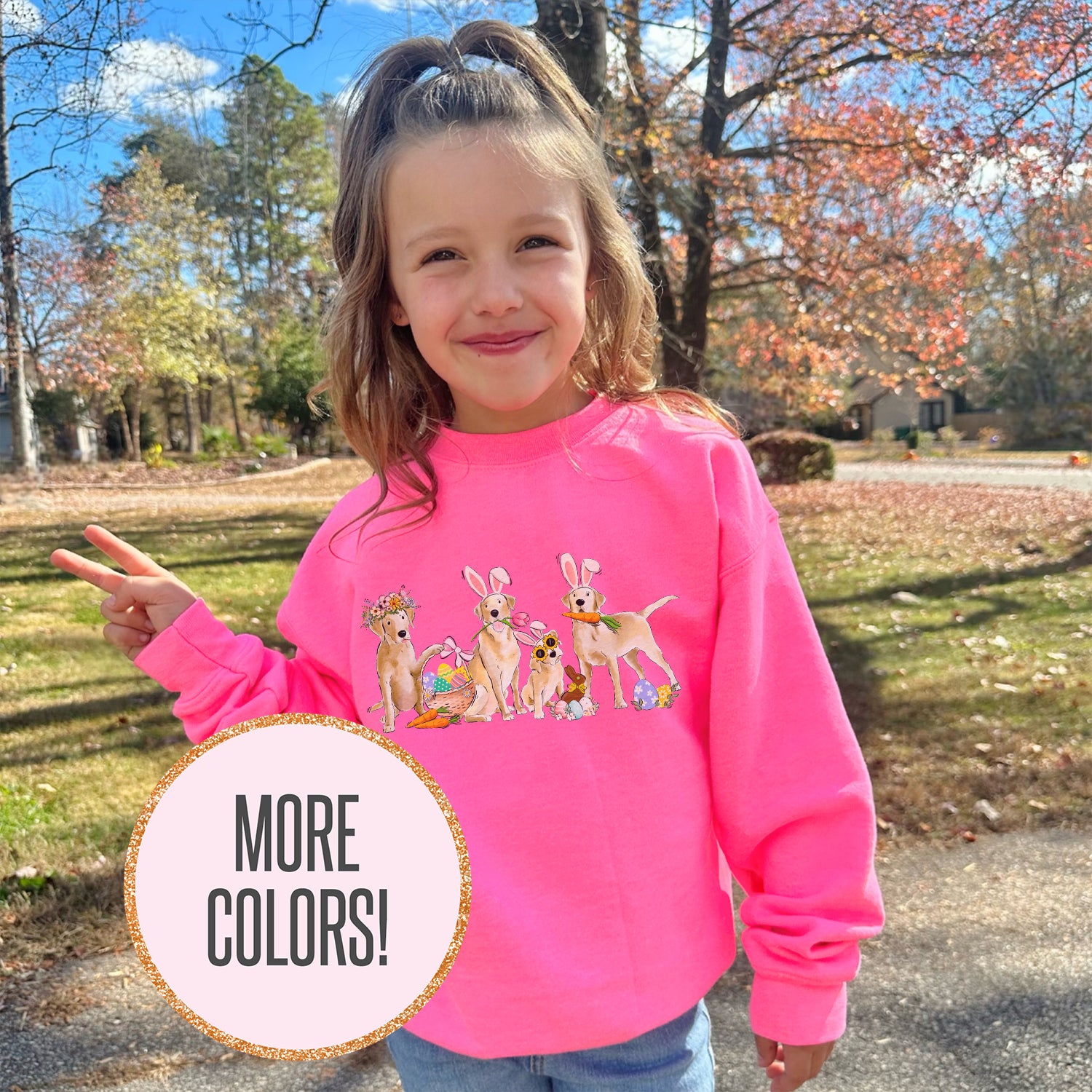 Hop into spring with SEF's Easter Youth Sweatshirts Featuring Yellow Labradors hilariously dressed as Easter bunnies, each design is hand-drawn by Samantha herself, adding a personal touch to your holiday wardrobe. Not only is it adorable, but it's also as soft as a bunny's fur, ensuring maximum comfort while you spread Easter cheer! ๐ธ๐ถ๐ฐ